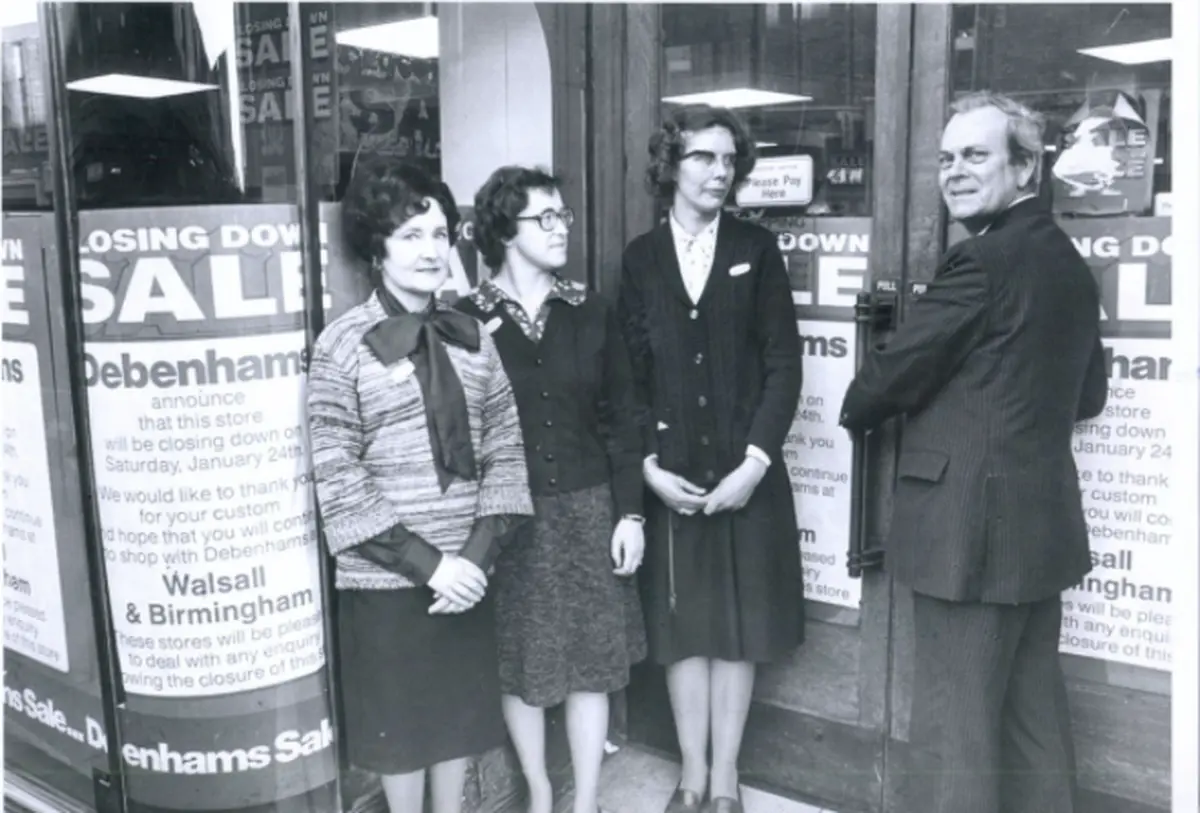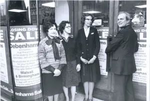 "Four Debenhams staff with 100-years service between them were bidding a fond farewell as the store in Dudley High Street closed for the last time in January 1981. Manager Douglas Spalding, who was with the company for 26 years, was photographed with Nancy Robinson, Kathleen Jackson and Marion Sutton."