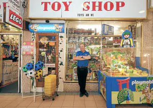 "Owner Alan Caswell outside the Arcade Toy Shop in the Fountain Arcade in July 2011."