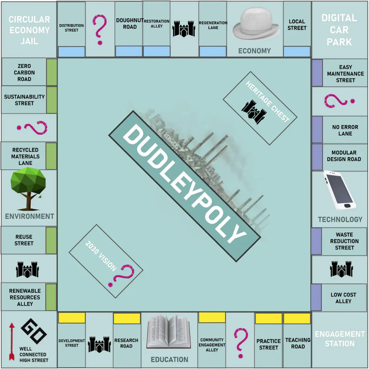 The factories represent the Industrial Revolution era of Dudley, a time when Dudley was the king of England, and basically ran the entire process. It was an important aspect of Dudley’s Legacy, and sits as probably its crowning glory - even if today we can recognise the disastrous affects it had on the world in the short period of time the era passed.