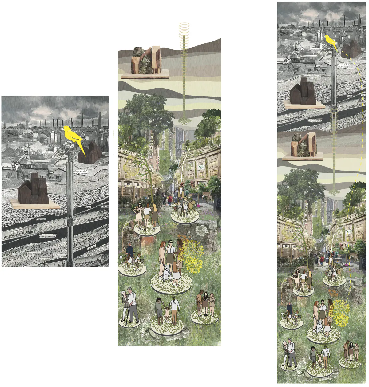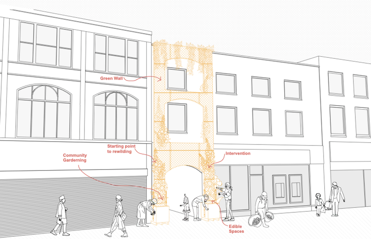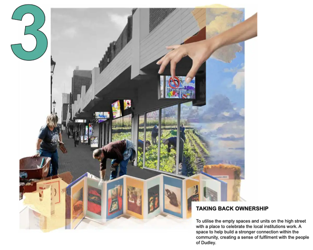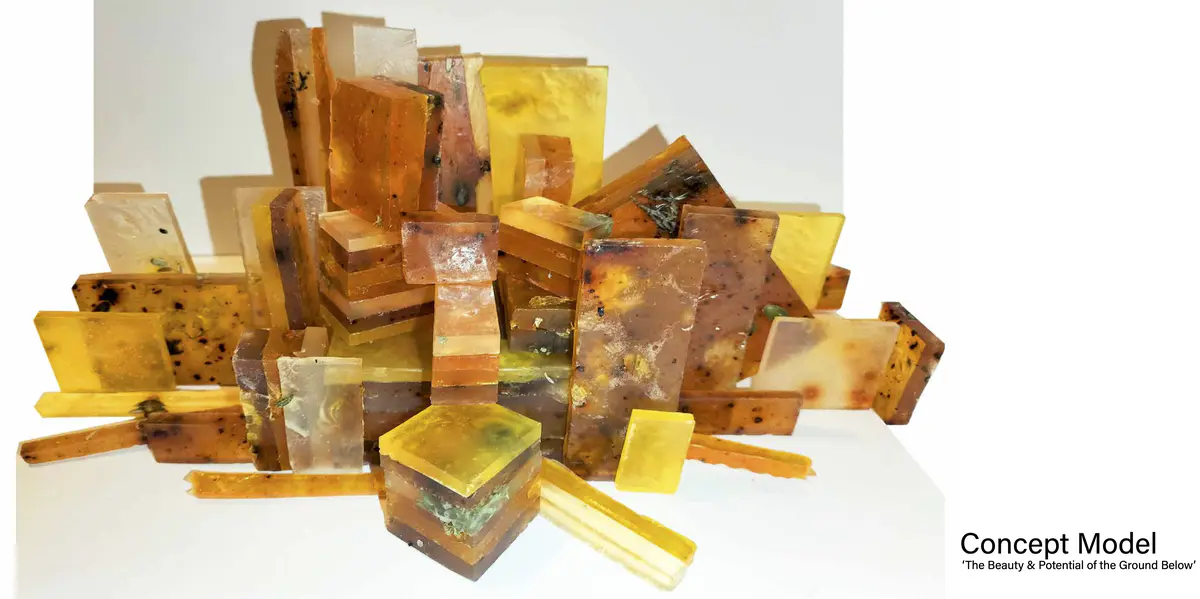 Concept Model - The model represents the idea of digging into the High Street itself. The idea was to drastically alter the form of the High Street to a point that it altered the ways that people in Dudley would live their day-to- day, changing the theatre of their lives, so that they could learn about their own history, their legacy, and about the endless possibilities of Dudley’s future. The idea was inspired by the word “Cut”, which in Black Country Dialect means “Canals”, as they were long cuts through the land.