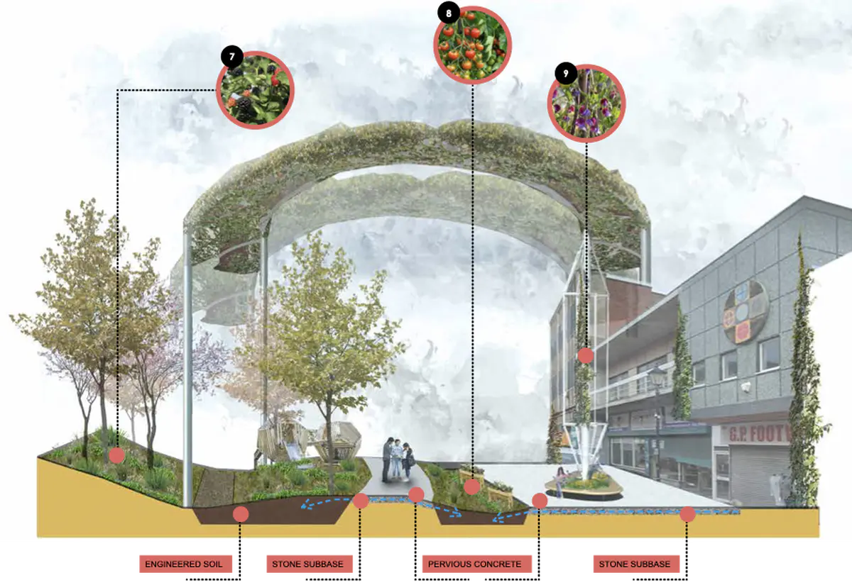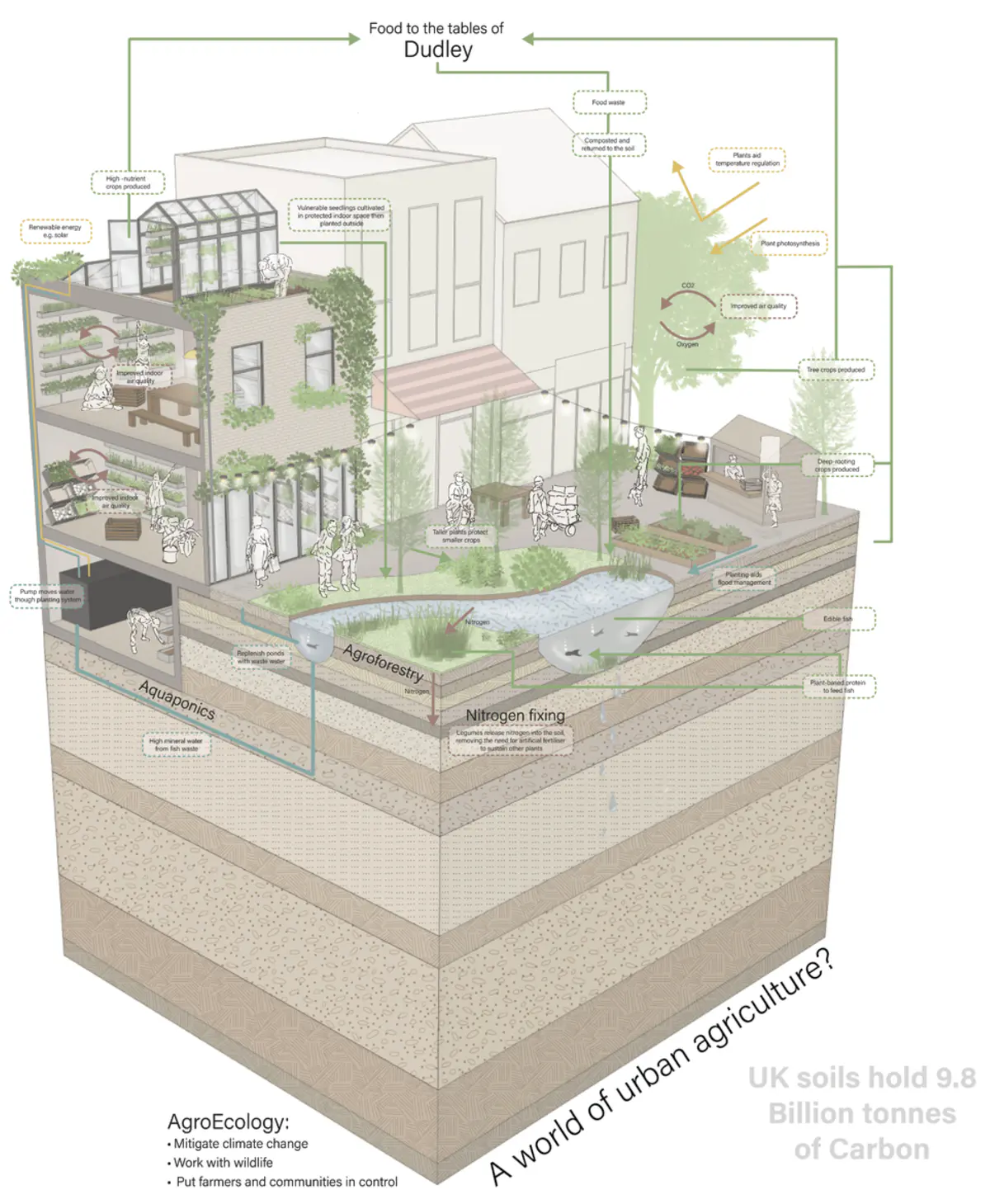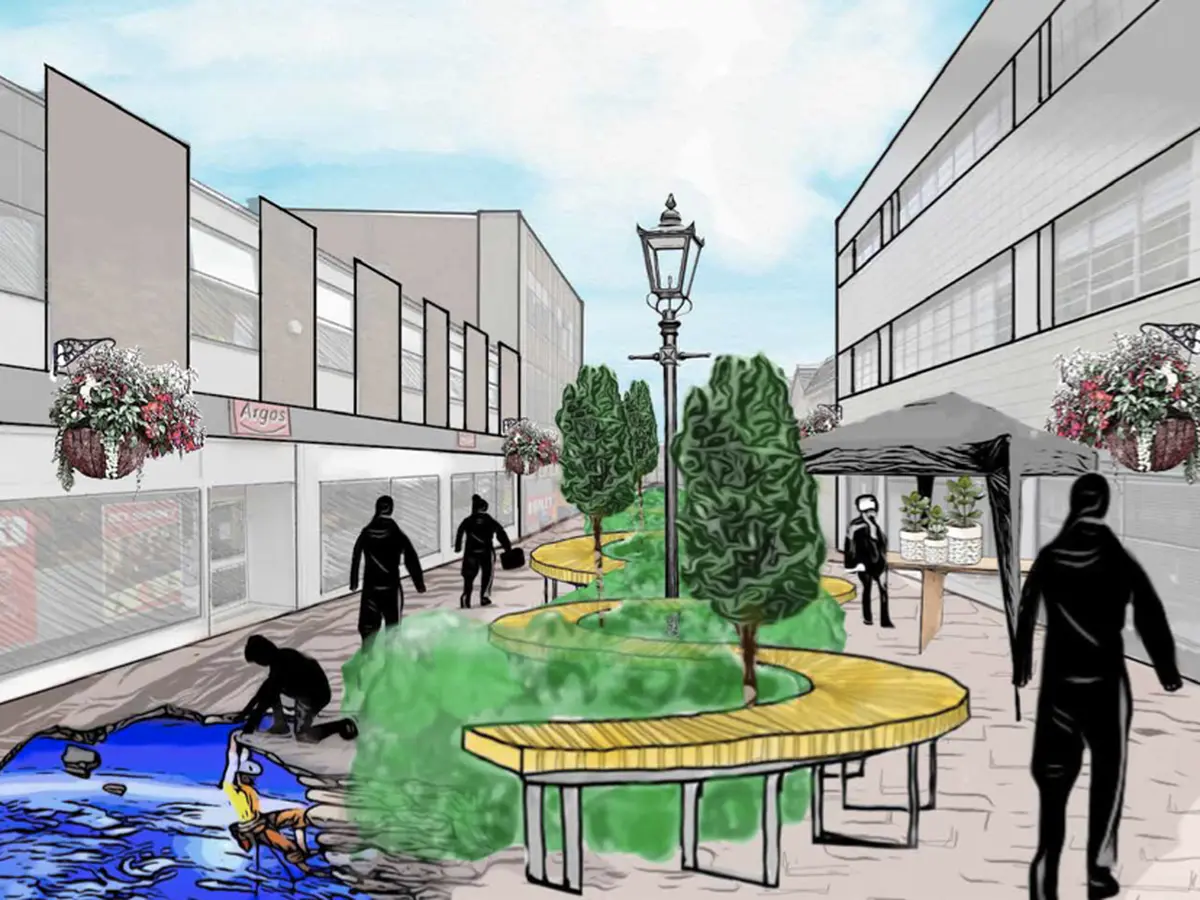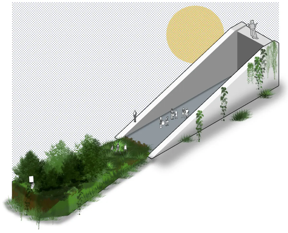 Concept Model - The model represents the idea of digging into the High Street itself. The idea was to drastically alter the form of the High Street to a point that it altered the ways that people in Dudley would live their day-to- day, changing the theatre of their lives, so that they could learn about their own history, their legacy, and about the endless possibilities of Dudley’s future. The idea was inspired by the word “Cut”, which in Black Country Dialect means “Canals”, as they were long cuts through the land.