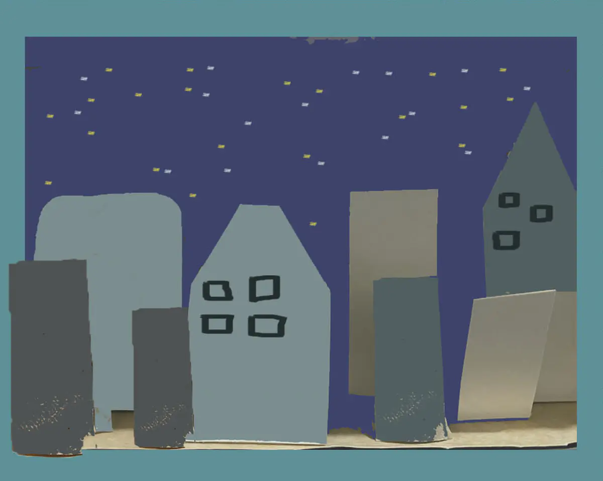 The blue foam pieces can be viewed as points or highlights of the journey, or they can represent different ways of getting to, and from the centre, suggesting that the journey doesn’t end with the destination.